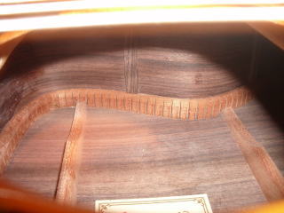 また、このギターは一般のクラシックギターと異なり、ネックにアジャスタブルロッドがあり、ネックの反り調整が出来ます。現在のセッティングですが、ネックの反りなし、12F6弦の弦高は3.2mm程度でクラシックギターとしては非常に弾きやすい状態です。この状態でもサドルの高さは十分にあるため、弦のテンションも落ちることなく最適な状態です。