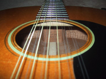 12弦ギターというのはすぐに弦が切れて(特に6弦の一番細いGの弦) 困ったものですが、このギターではまだあまり弦が切れていません。不思議ですね。